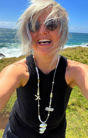 Like all our pieces, it is handcrafted with love and care in our studio near Byron Bay. This eclectic limited-edition statement necklace is made from the following semi-precious stones and findings: