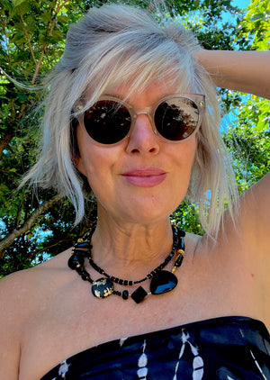 Every woman needs one black piece of earrings in their wardrobe and if you enjoy a monochromatic mix of exquisitely faceted and organic black stones, this one's for you!