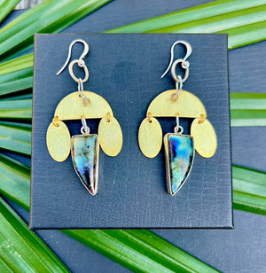 The real heroines of these statement earrings are blue flashy Labradorite focal stones, which are notoriously hard to photograph (see image on right).