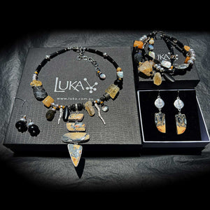 Like all our pieces, this one-of-a-kind 4-piece set is handcrafted with love and care in our studio near Byron Bay. Made from the following semi-precious stones and findings: