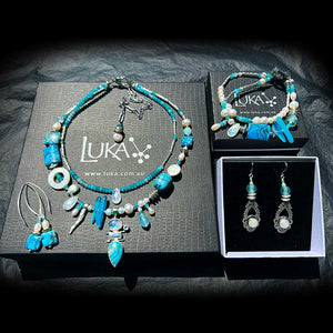Moonstones, Pearls, Kyanite, Aquamarine and Agates in the perfect electric blue - oceanic colour spectrum.
