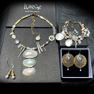 Like all our pieces, it is handcrafted with love and care in our studio near Byron Bay. This eclectic limited-edition statement necklace is made from the following semi-precious stones and findings: