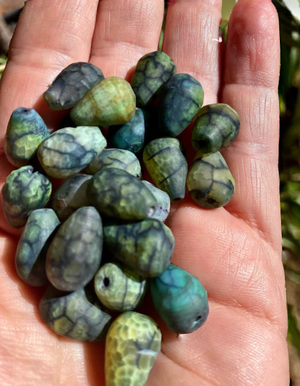 I am calling it. Contrasting purple and green is simply one of the best colour combinations out there! A massive raw & organic Amethyst cluster making love to forest- emerald - chattreuse mottled matte Dragon Vein Agates. I have been holding on to this forest green - emerald- chartreuse matte-hued Dragon Vein Agate (see image below) for almost a year, thinking that each looks like a precious little bird egg, but I couldn’t see them in a piece. Until now!