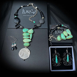 Vibrant Amazonite mixed with Onyx, Lava & Tourmaline and tiny specs of Australian Chrysoprase anyone?