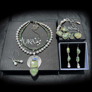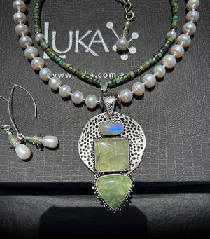 In the mood for Prehnite, Pearls, Hubei Turquoise & a little bit of moonstone anyone? This one turned out so well ... maybe it's the soothing colours that harmonise so well... or the rather unusual combination of Pearls and Prehnite. I don't know, but I just love it!