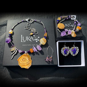 For this set, I mixed an exquisite Agate pendant with Citrine & Amethyst (and a few other semi- precious stones such as Agates, Lava & recycled glass) and the result is purple & honey necklace that is bold, vivacious ... it simply does everything right.
