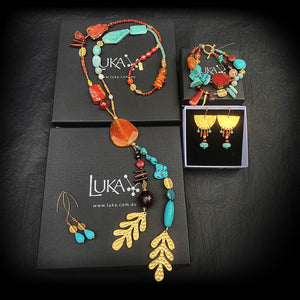 I made this set with Uluru firmly on my mind! Nothing prepared me for the riot of colours and the early morning turquoise sky I experienced while camping there as a young student. I hope to go back soon- until then I will translate my experience into jewellery!