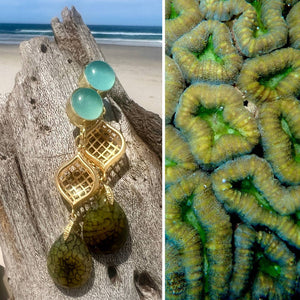 They’re proof that sometimes, coral doesn’t just inspire conservation — it inspires design rebellion. And if you think greens and blues can’t flirt with gold, these earrings beg to differ.