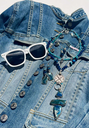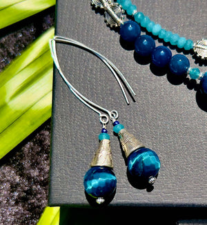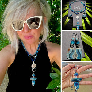 This one-of-a-kind statement set is made from the following semi-precious stones and findings: