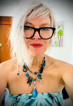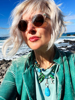 Complemented with Indian raw Emerald, Mexican Crazy Lace Agate, Brazilian Agates & Chrysocolla, precious Hubei Turquoise and many more this one's for you if you are in need of some oceanic vibes.