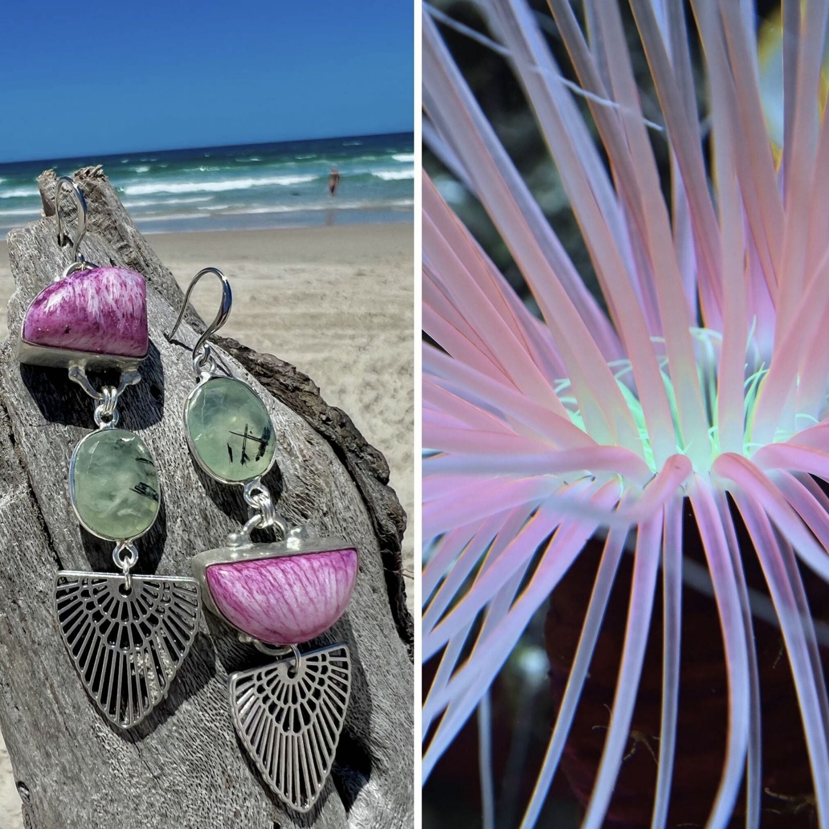 Like all our pieces these one-of-a-kind earrings are handcrafted with love and care in my little studio in Lennox Head!