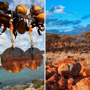 Some materials already carry their own narrative—you just have to build around it quietly. The stone in these earrings immediately reminded me of central Australia: the deep red terrain, the iron-rich escarpments, the almost surreal geometry of the outback.